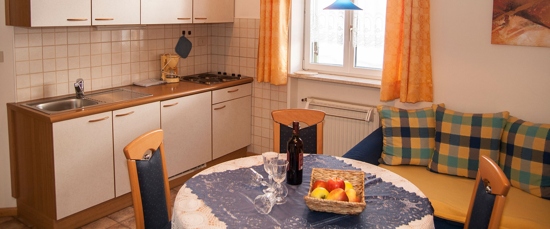 Verträumtes, geschmackvoll eingerichtetes Zweizimmerappartement – Küche, Schlafzimmer, Bad – mit Ostbalkon, für 2 bis 4 Personen (3. und 4. Schlafgelegenheit auf ausziehbarer Couch)